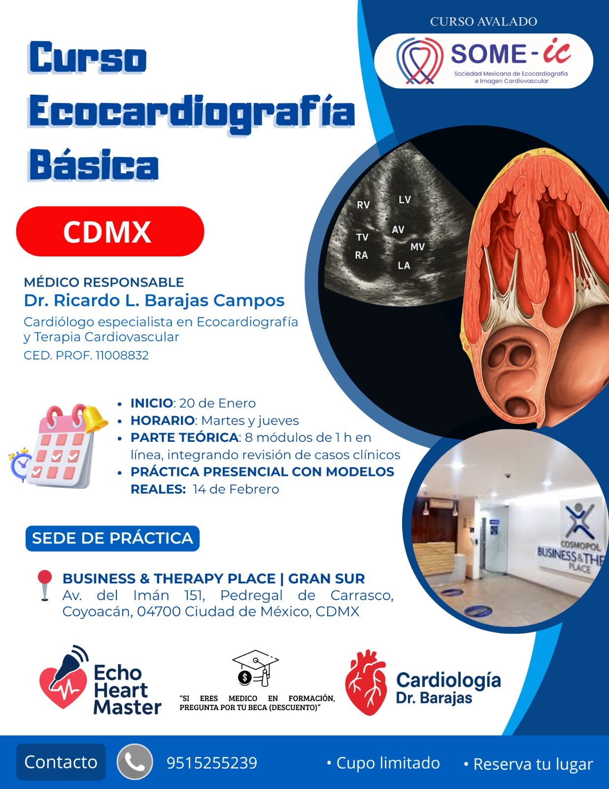 - Especialista en Ecocardiografía Instituto Nacional de Ciencias Médicas y Nutrición “Salvador Zubirán”.